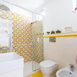 Koupelna se skládá z bidetu, prostorné sprchy a samostatné toalety.
